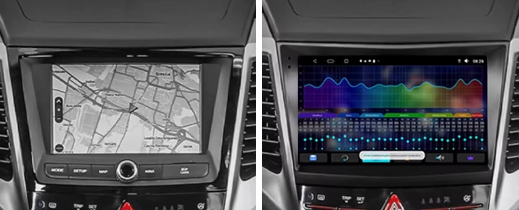 -A beépítőkeret azonos, ám a kijelző a mai, modern megoldások alapján nem a műszerfal síkjába kerül!